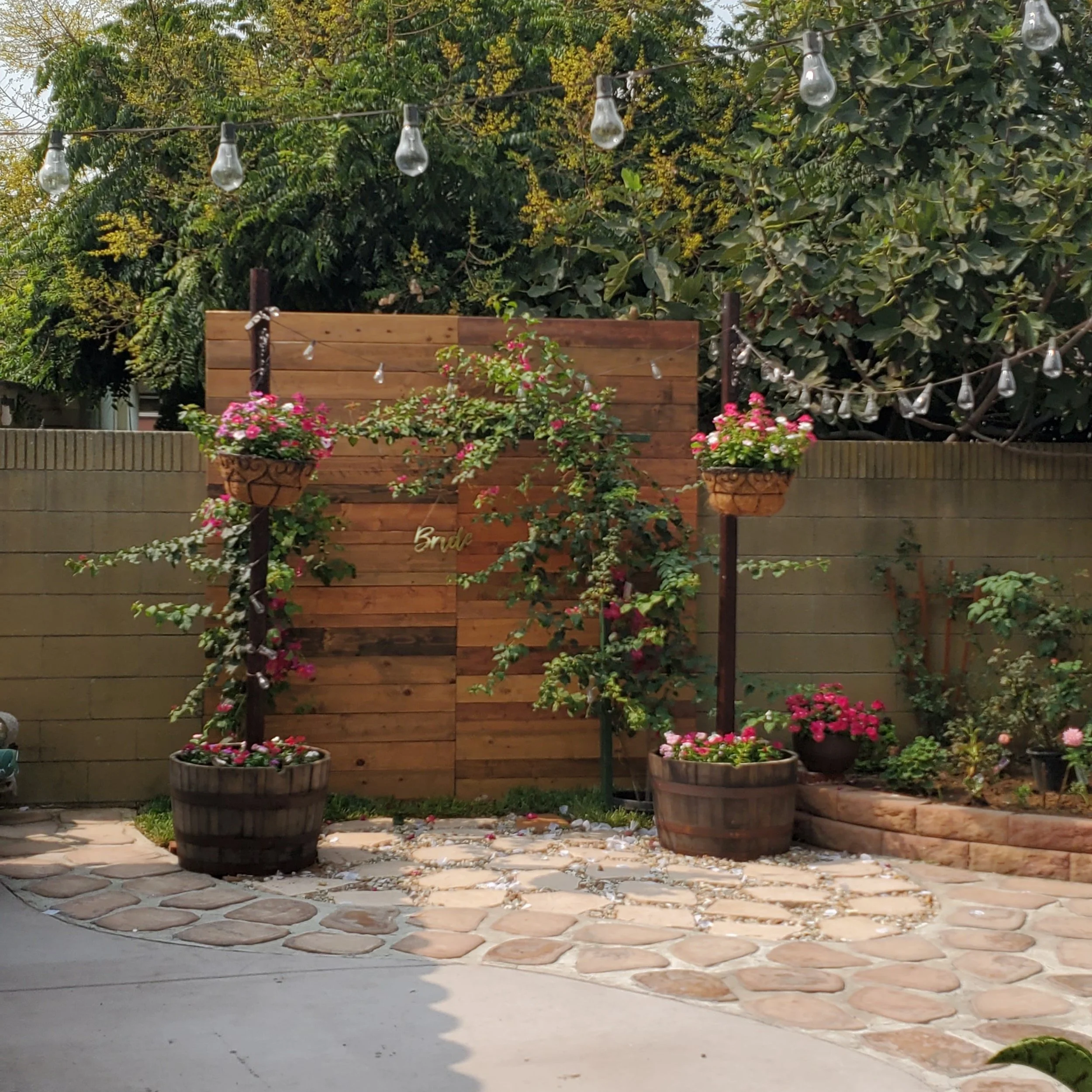 Privacy Wall Before and After - mix of Pallet and Hedge Wall
